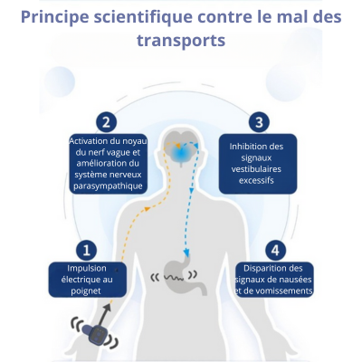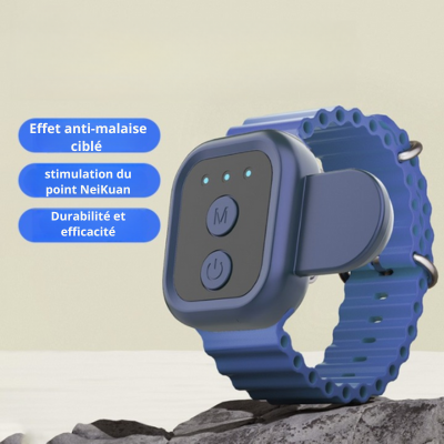 Notre bracelet anti-nausée est la solution naturelle, sans médicaments, qui apaise efficacement les nausées, vomissements, vertiges, migraines et anxiété liés aux voyages.