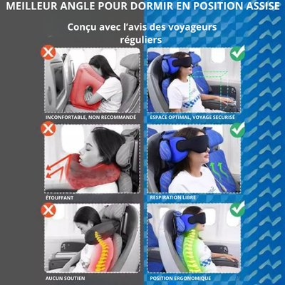 Grâce au design ergonomique de notre accessoire de sommeil pour voyage longue durée, vous gardez une respiration fluide sans sensation d’étouffement. Plus de 1000 voyageurs réguliers ont contribué à concevoir ce modèle unique, pensé pour votre confort.